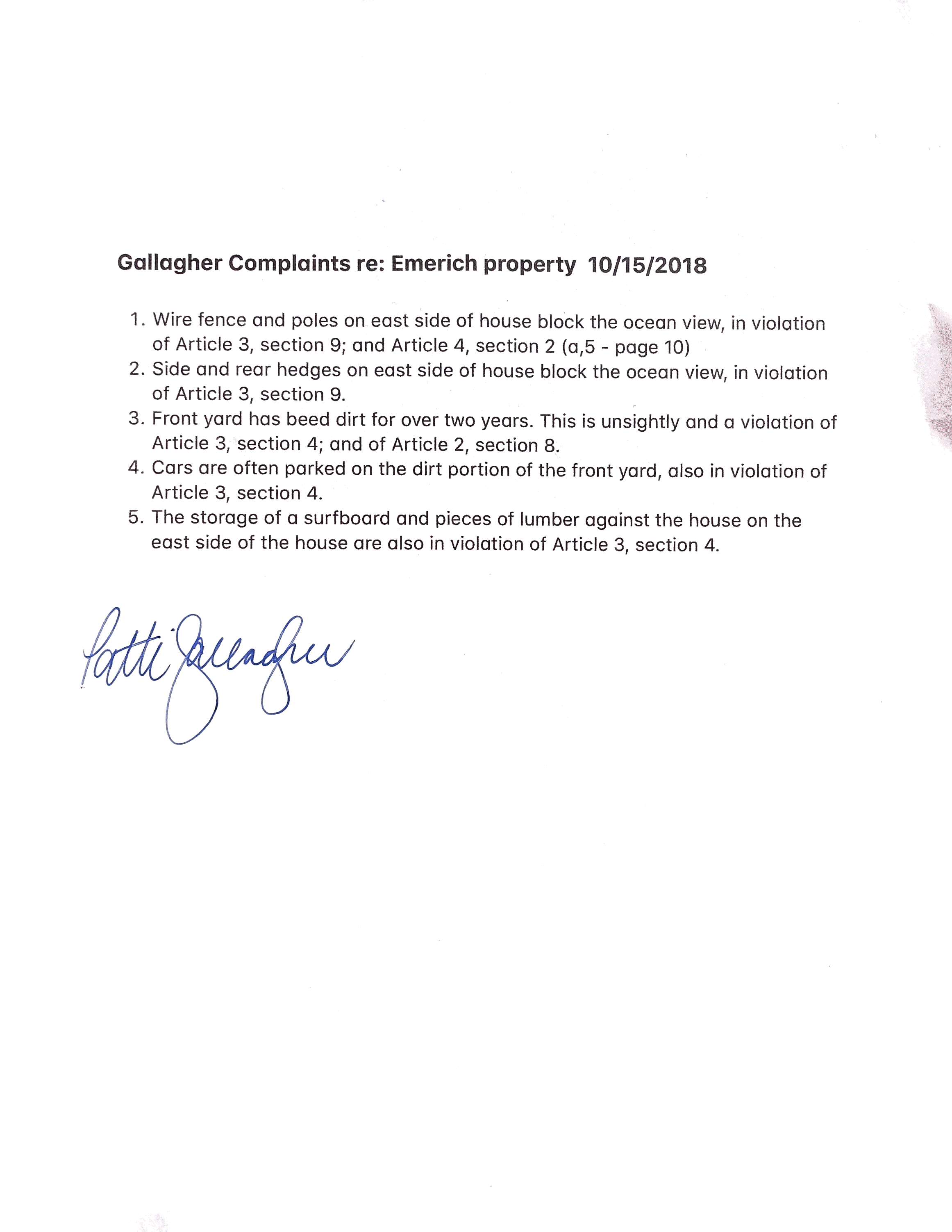 PHOA Emerick Response to Hearing Results and Civil Code Violations